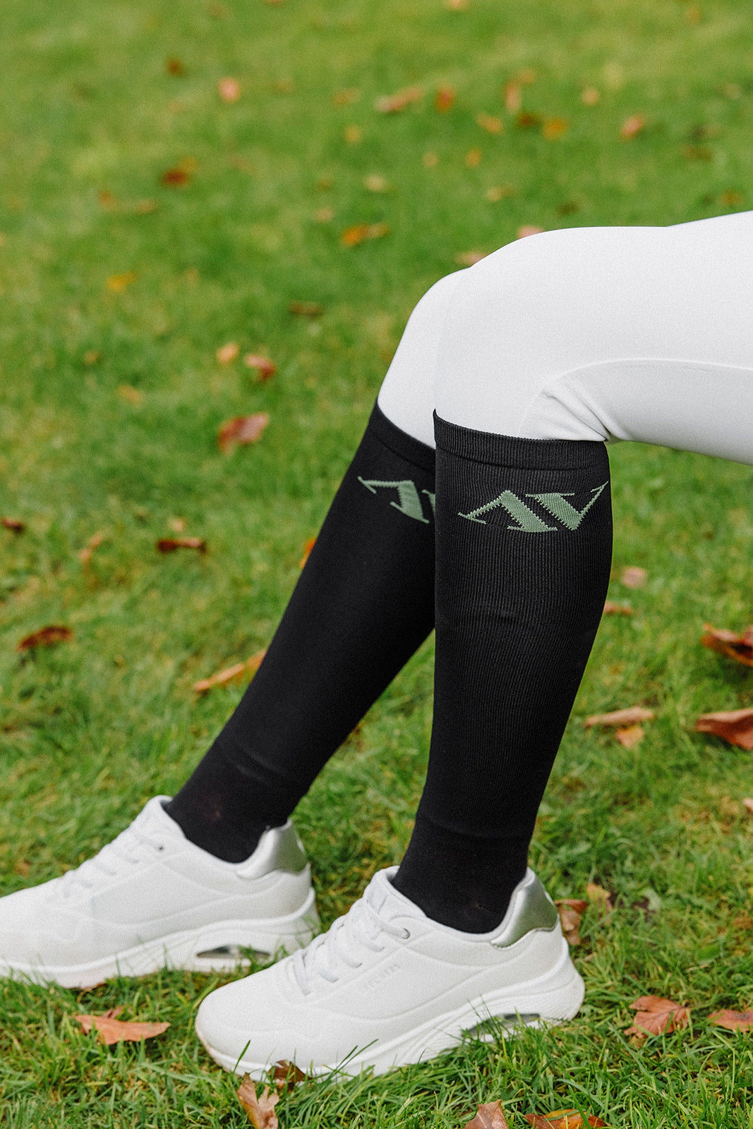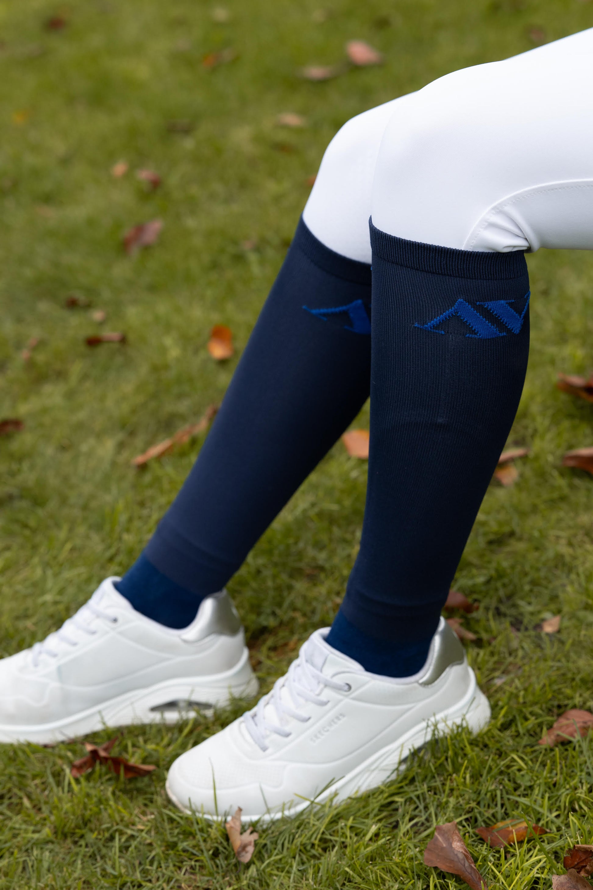 Ridesokkene har en smal passform som sitter tett og behagelig under ridestøvlene uten å krølle seg. Det myke og elastiske materialet gir god komfort og pusteevne. Sokkene har forsterket hæl og tå for økt slitestyrke, og den tynne stoffblandingen på leggen gjør dem ideelle i trange ridestøvler. Kommer i tidløse farger som passer like godt i stallen som på stevne